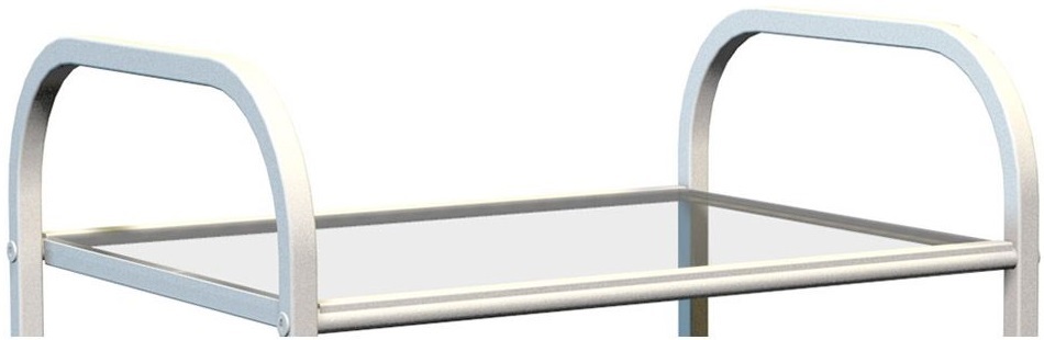 - Полки образуют три уровня хранения. Выполнены из стекла толщиной 5 мм, устойчивого к возникновению трещин и сколов, а также к обработке дезинфицирующими средствами.