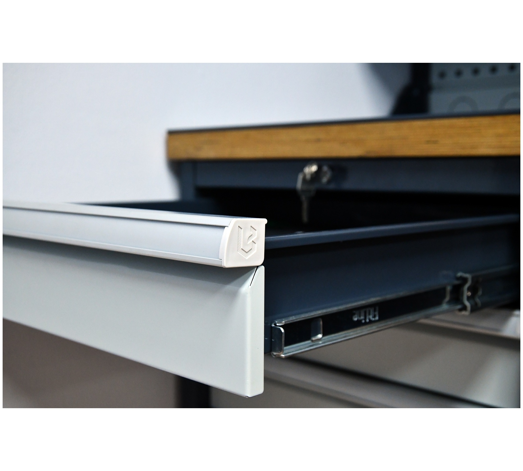 - Все тумбы комплектуются центральным замком и системой, препятствующей одновременному полному выдвижению ящиков для предотвращения опрокидывания.